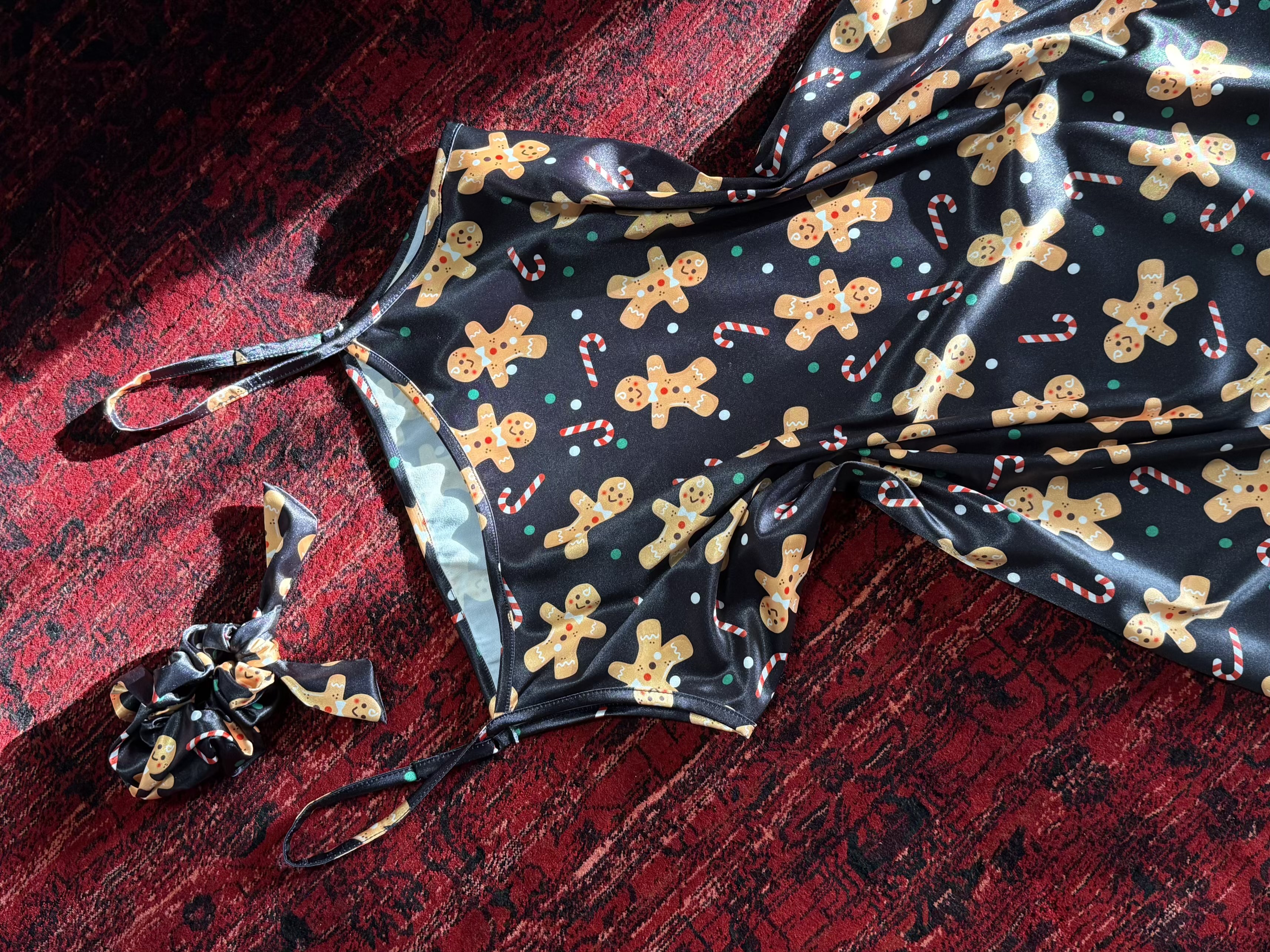 لباس خواب تمام ساتن وارداتی طرح کریسمسی