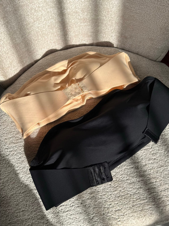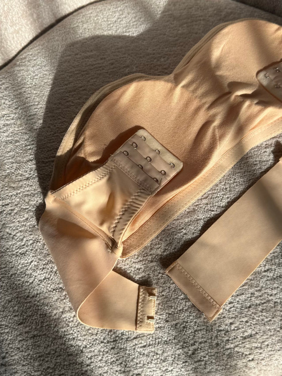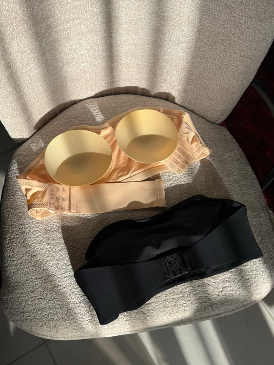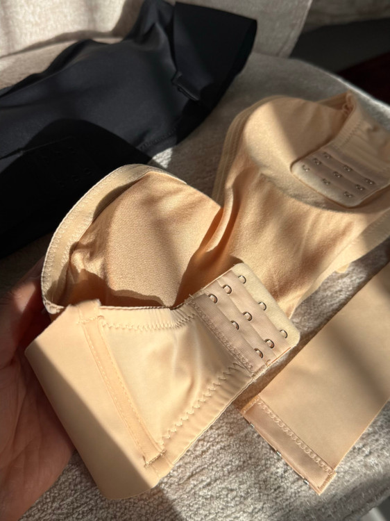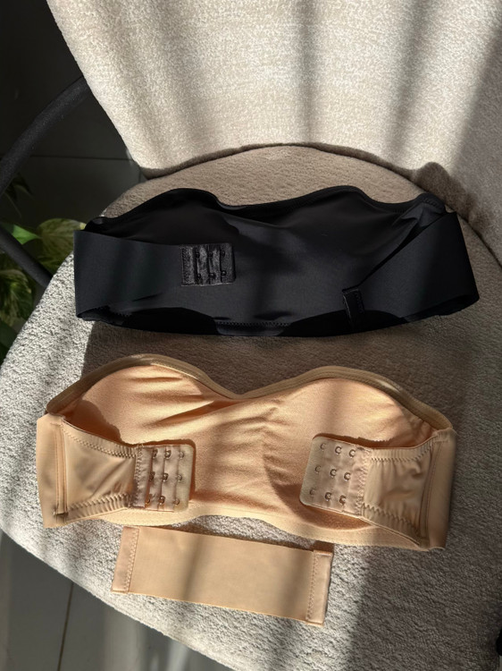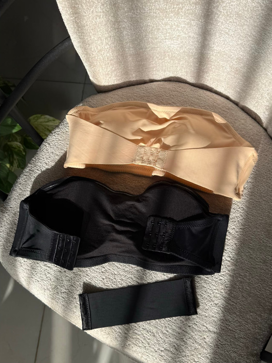 نیمتنه دکلته (باندی) با کاپ متحرک موجود در دو رنگ کاربردی مشکی و کرم، پشت کار قابل تنظیم از هر دو طرف برای فیت شدن بهتر، قسمت جلو قزن دار و قابل تنظیم با قابلیت نزدیک کردن سینه ها بهم و ایجاد خط سینه، قسمت بالای کاپ چسب حرارتی کار شده که با حرارت بدن فیکس میشه و تکون نمیخوره، قسمت بغل کاپ فنر میخوره برای ایست و فرمدهی بهتر، سایزبندی M/L/XL
