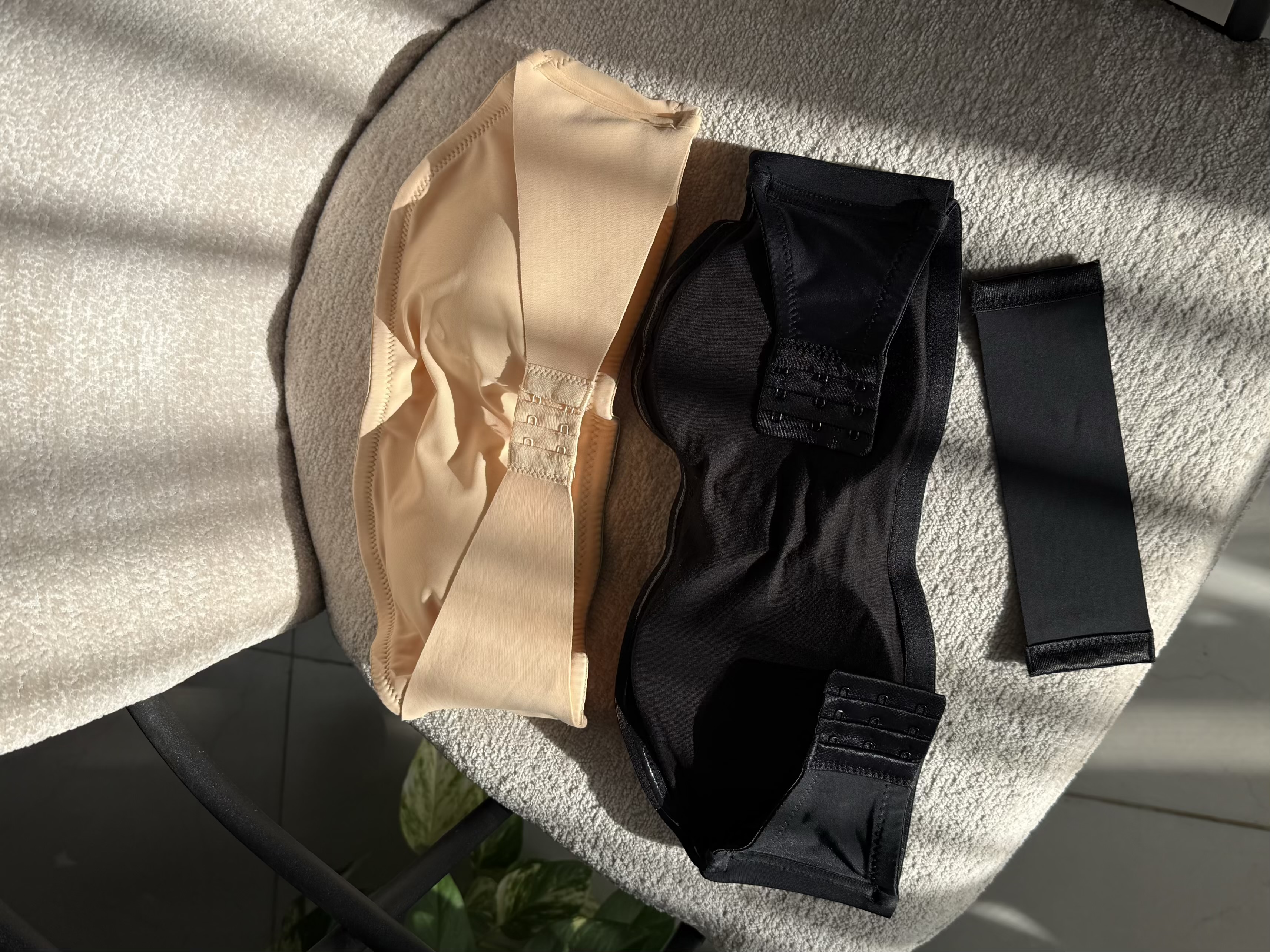 نیمتنه دکلته کاپ متحرک پشت قزن و جلو قزن در دو رنگ مشکی و کرم
