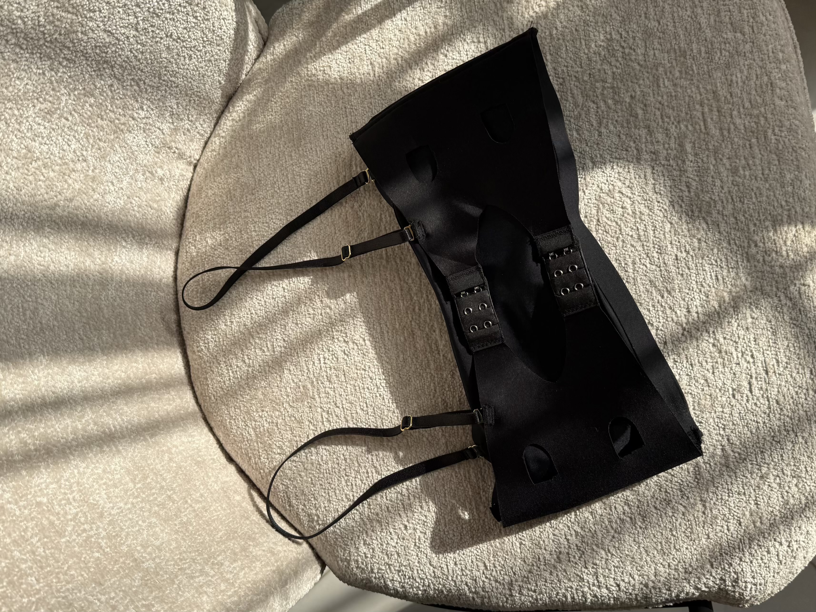 نیمتنه دکلته مشکی مدل پشت قزن با کاپ متحرک - نیمتنه باندی وارداتی