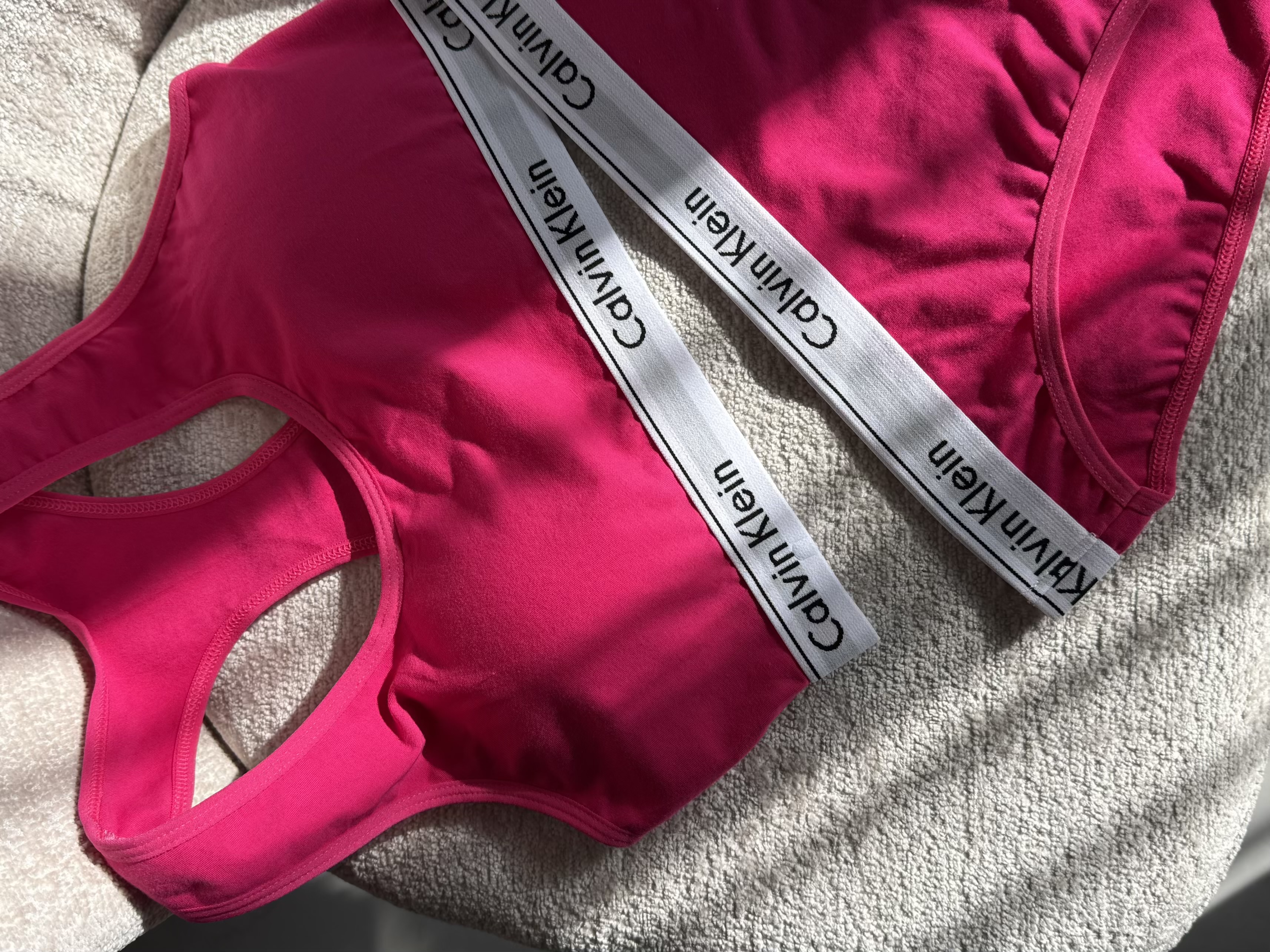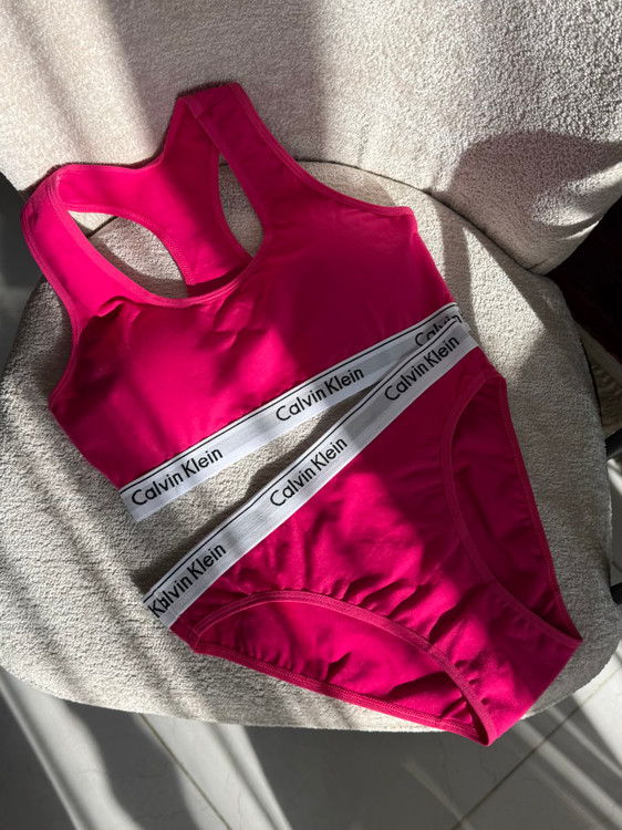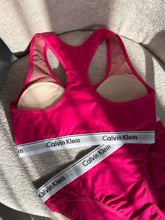 ست نیم تنه و شورت اسلیپ کلوین کلاین ، یکی از محبوب ترین انتخاب های بانوان عزیز در بین ست های متفاوت است. چرا که با ظاهر اسپورت و راحتی که دارد می تواند گزینه ای مناسبی برای استفاده روزمره، سرکار و باشگاه باشد. نیم تنه آن دارای پد متحرک و دارای کش در زیر سینه است که می تواند سینه ها را به خوبی هنگام ورزش نگه دارد. قسمت فاق شورت بکلس این ست، دولایه نخی است و می تواند بدون نگرانی از هرگونه حساسیت مورد استفاده قرار بگیرد. این ست در سه رنگبندی مشکی، سرخابی و گلبهی موجوده.