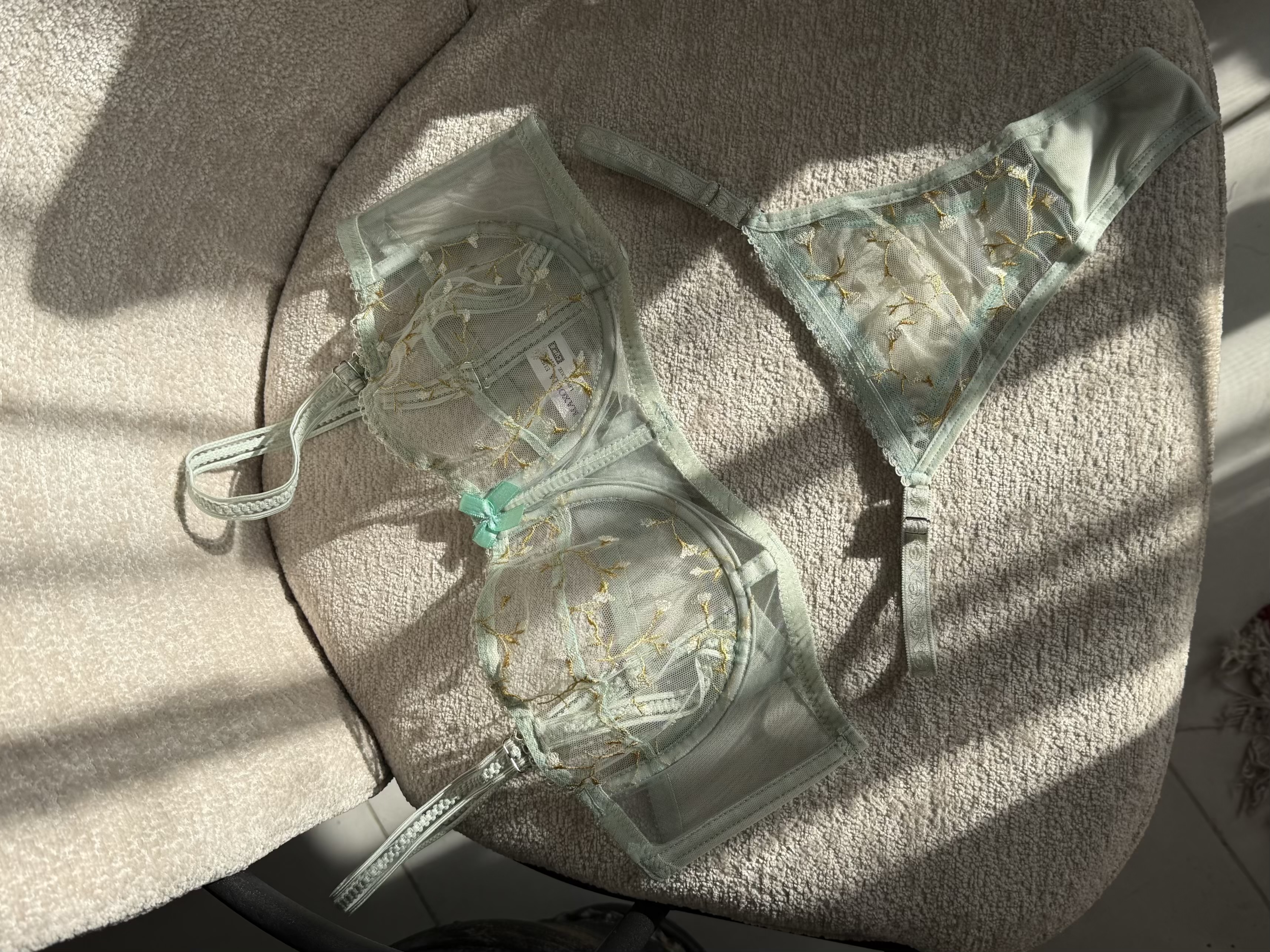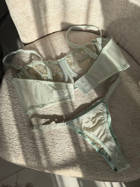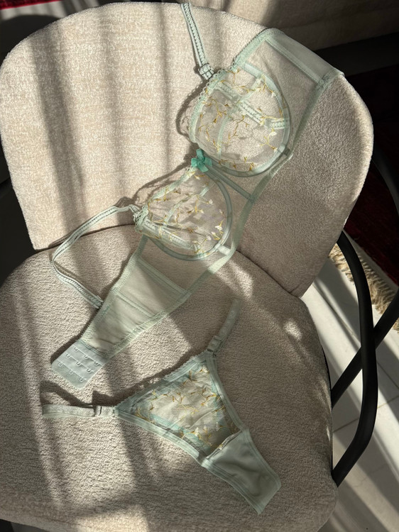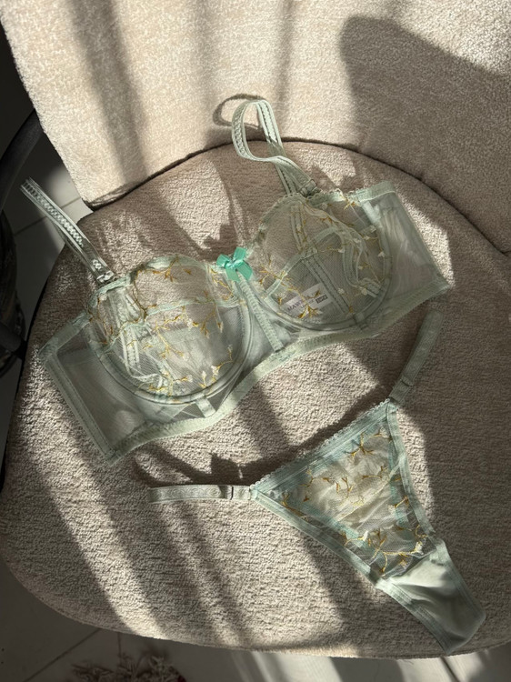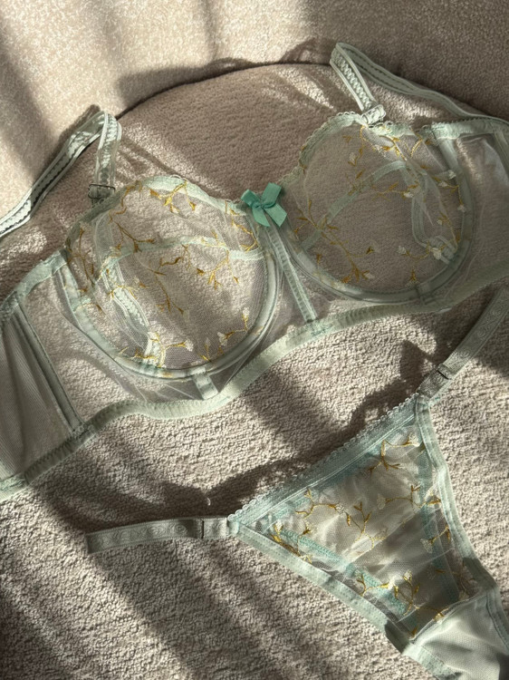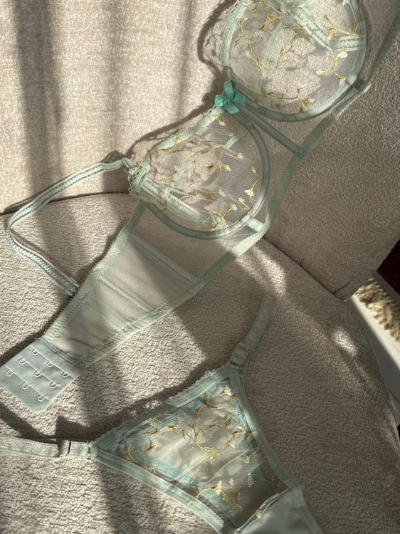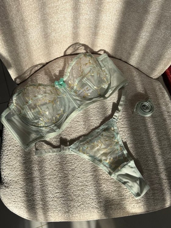 ست شامل سوتین فانتزی نیم بلند فنردار و شورت تانگ رگلاژدار، سوتین با تور گیپور طرح دار گل برجسته فنردوزی شده برای فرم دهی مناسب و ظاهری زنانه و لطیف. بند سرشانه این سوتین متحرک و بصورت دکلته قابل استفاده است.
