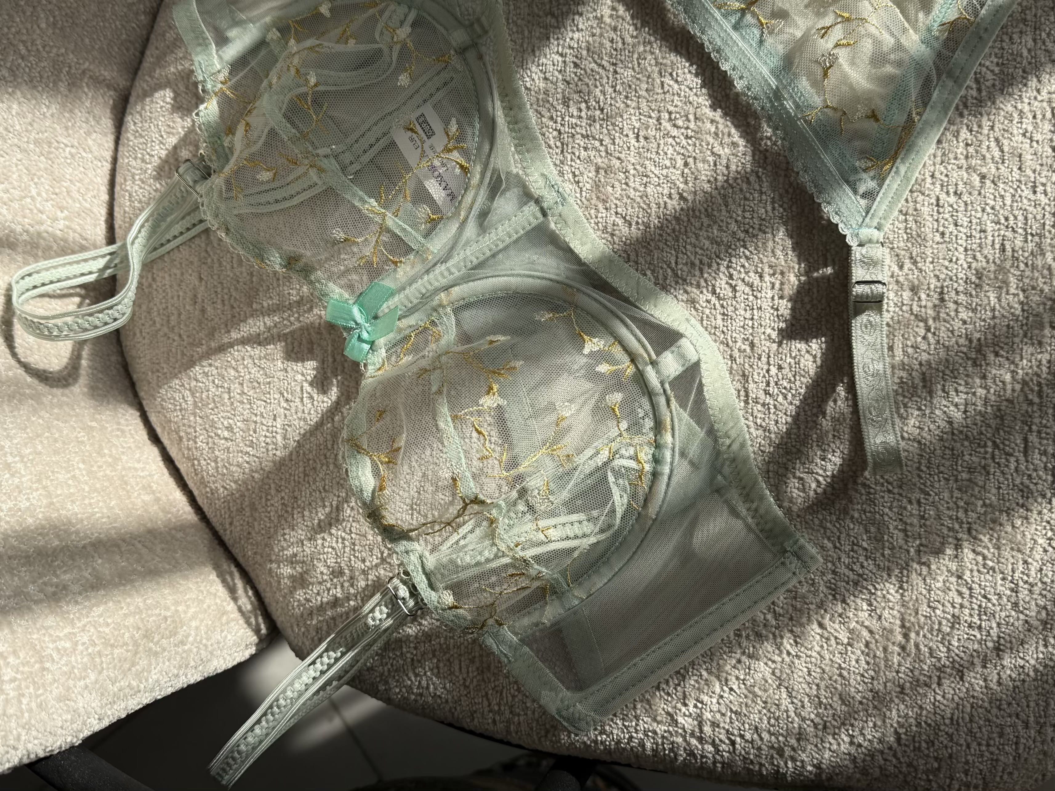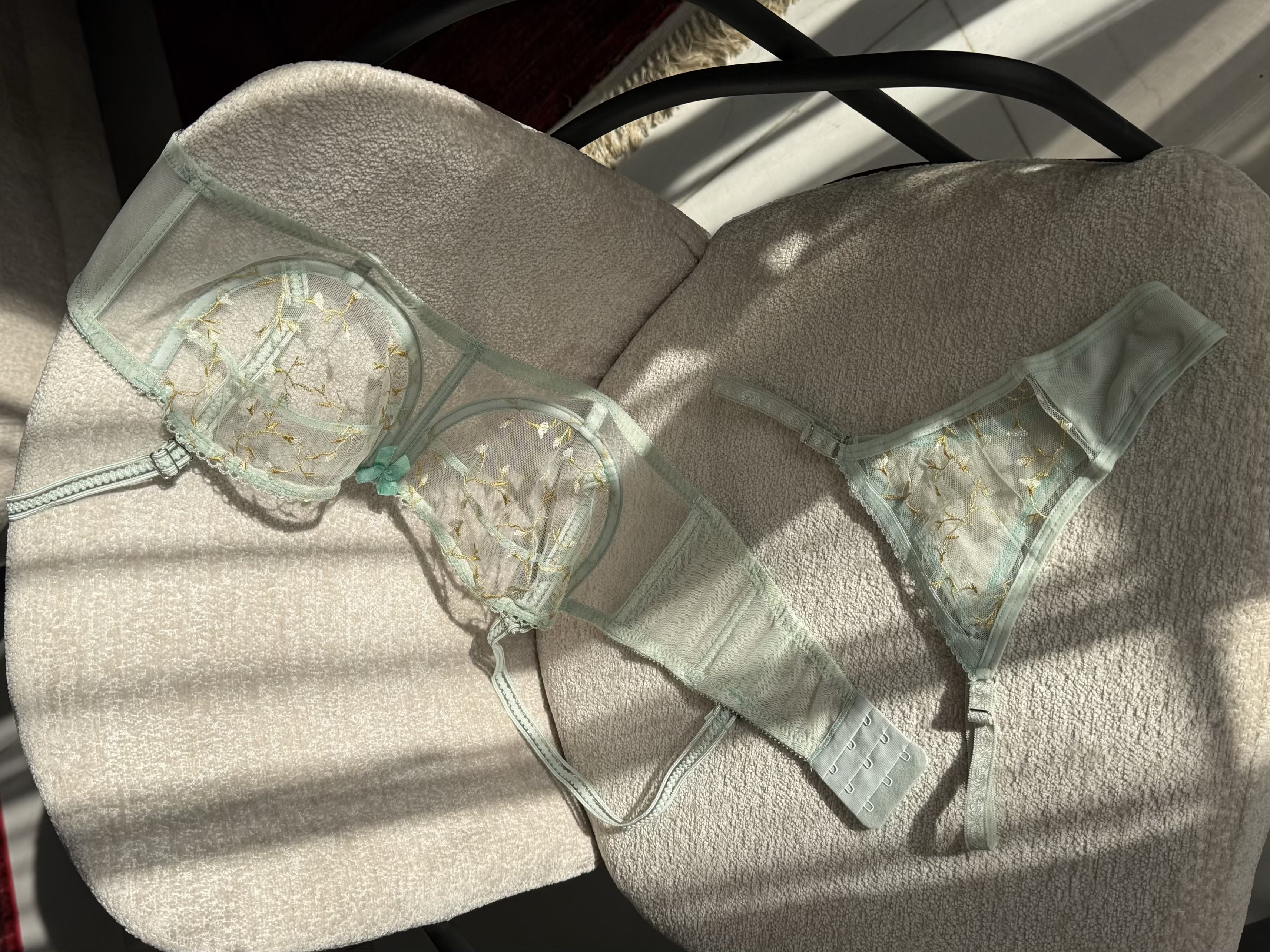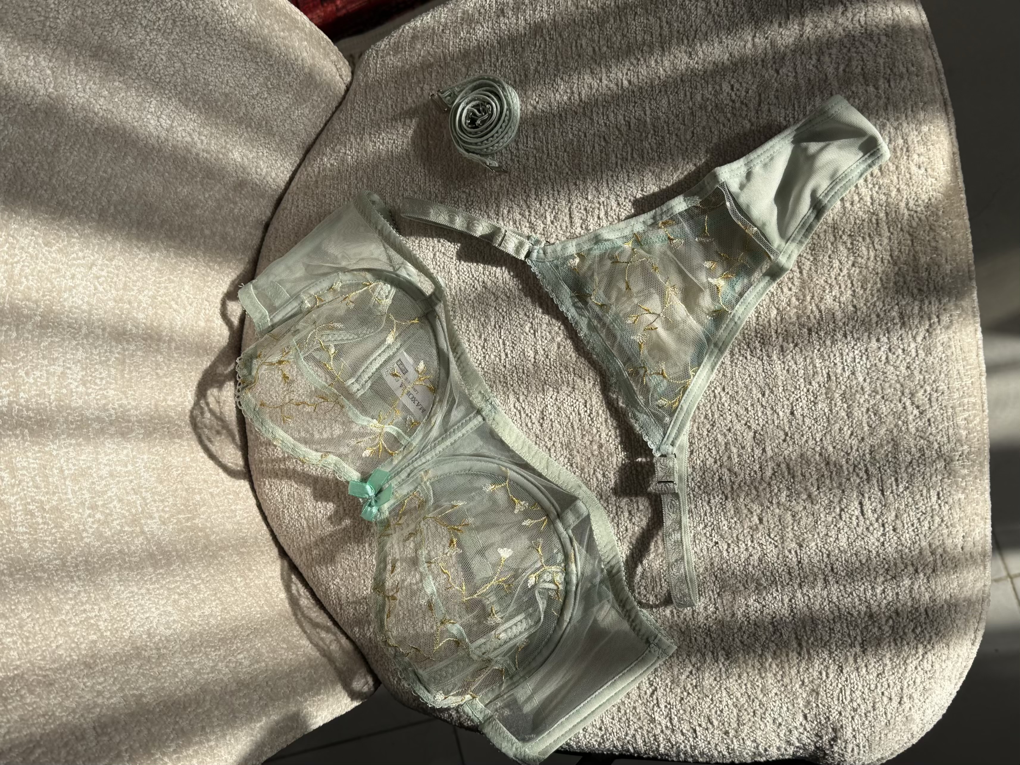 ست شامل سوتین فانتزی نیم بلند فنردار و شورت تانگ رگلاژدار، سوتین با تور گیپور طرح دار گل برجسته فنردوزی شده برای فرم دهی مناسب و ظاهری زنانه و لطیف. بند سرشانه این سوتین متحرک و بصورت دکلته قابل استفاده است.