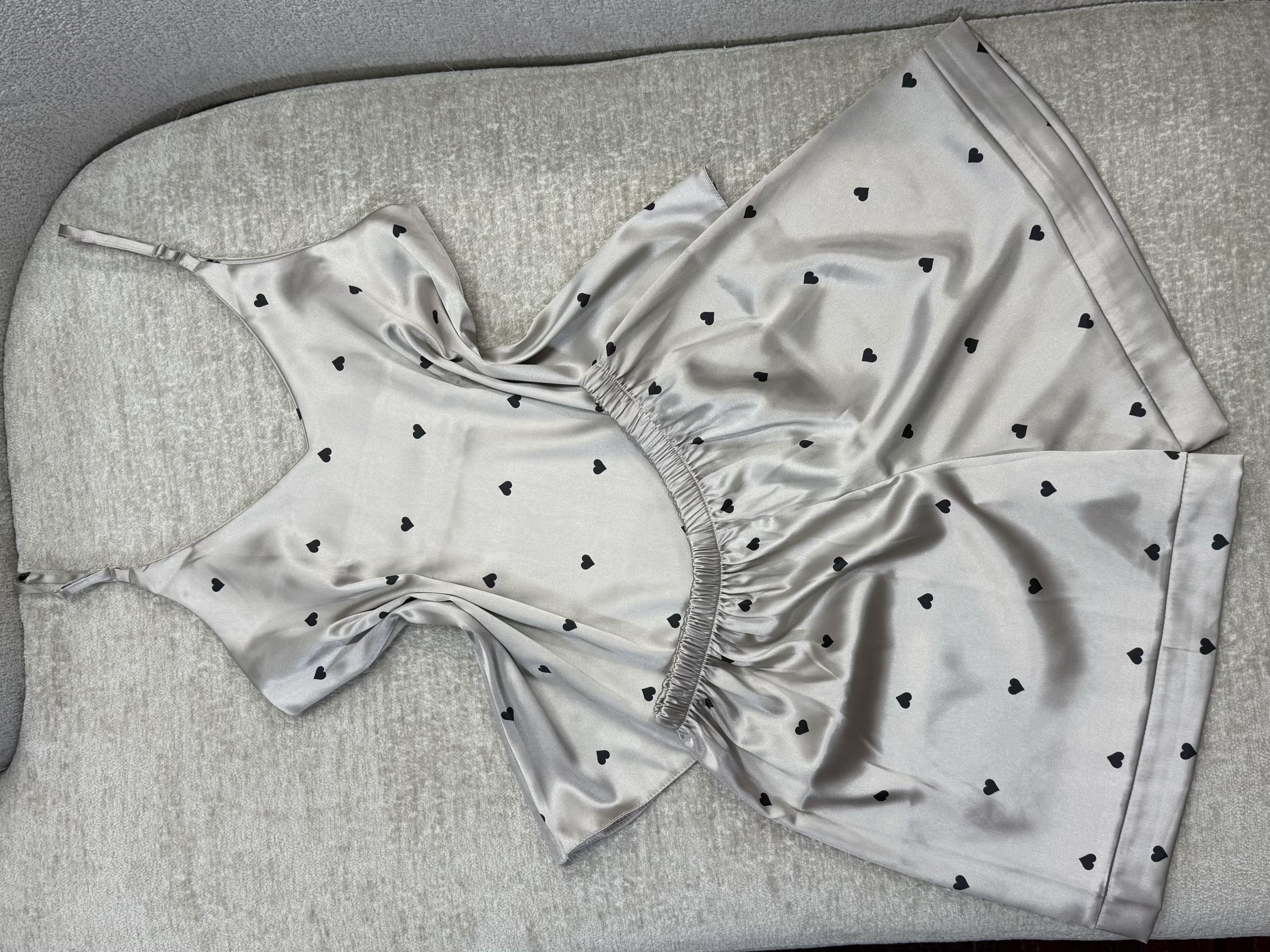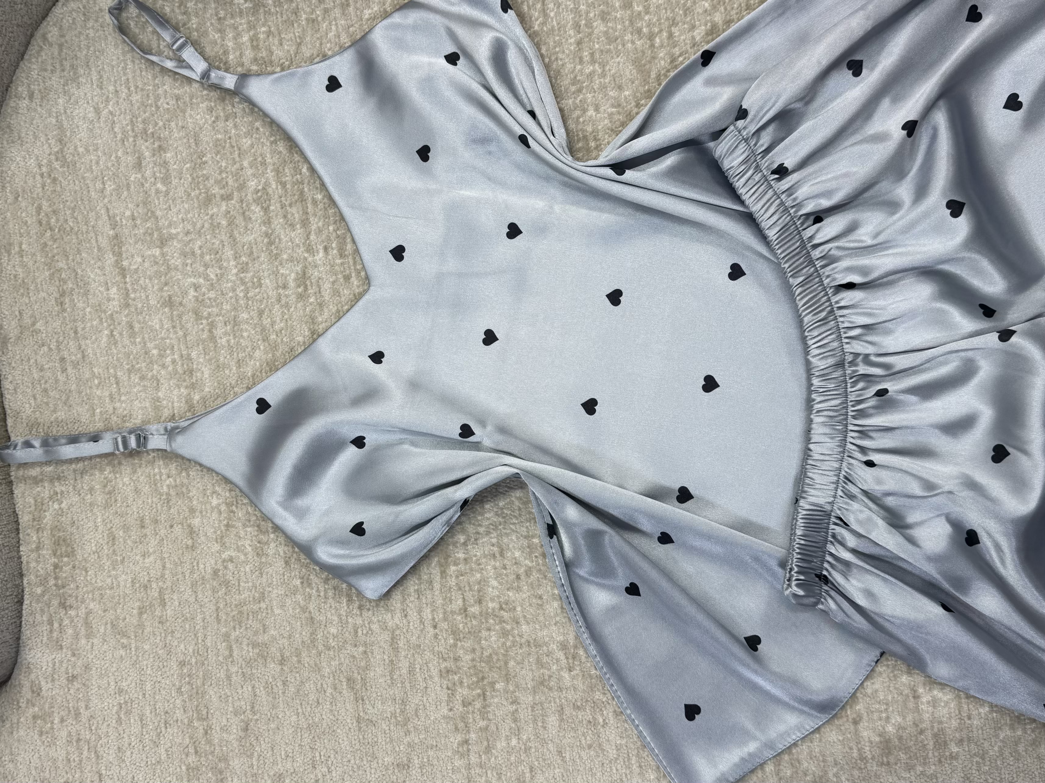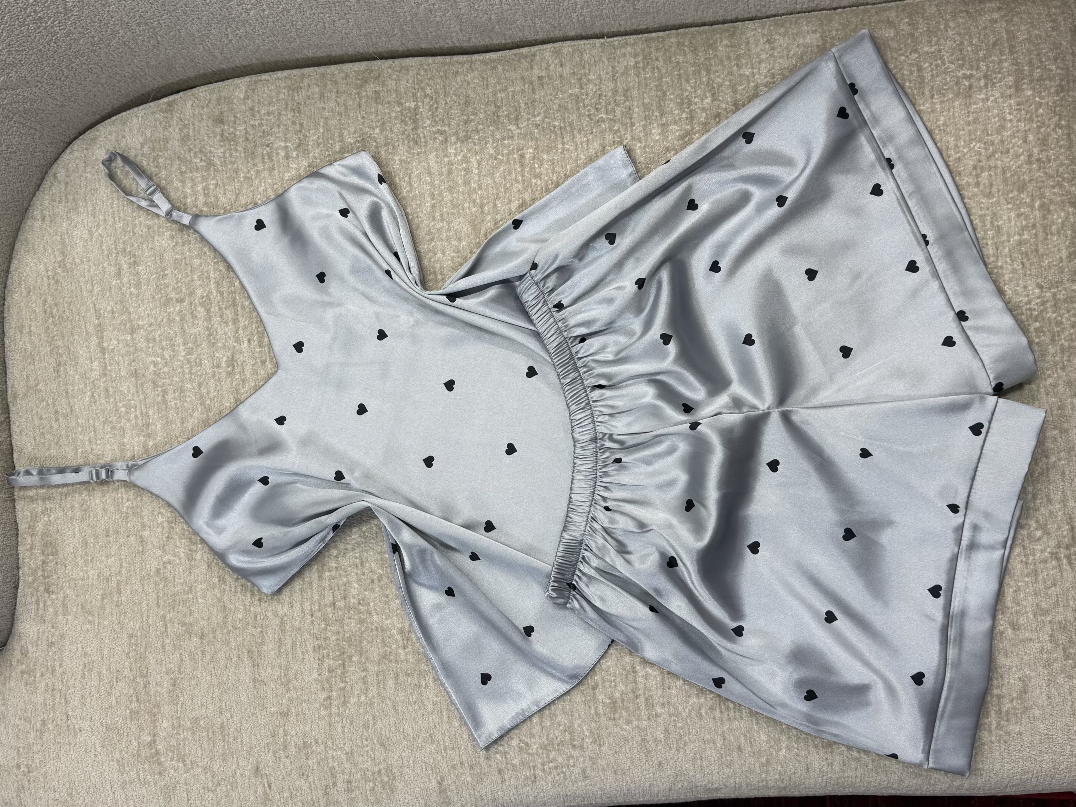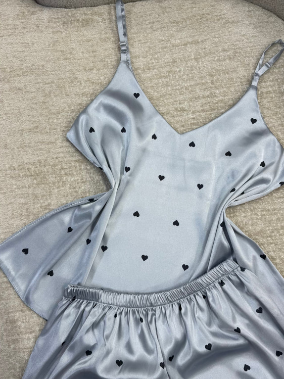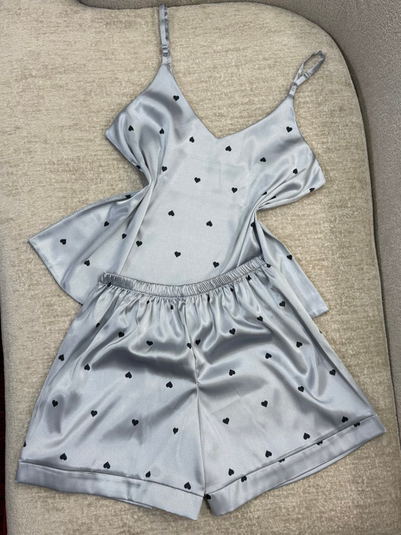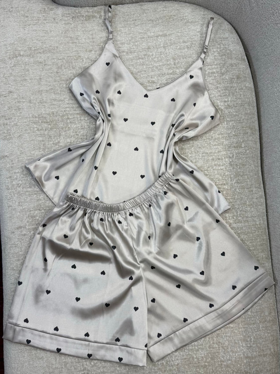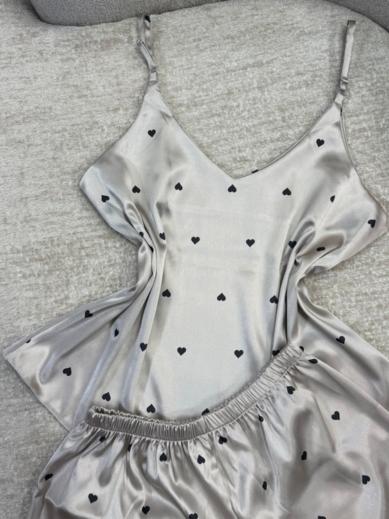 ست تاپ و شلوارک ساتن طرح قلب ریز