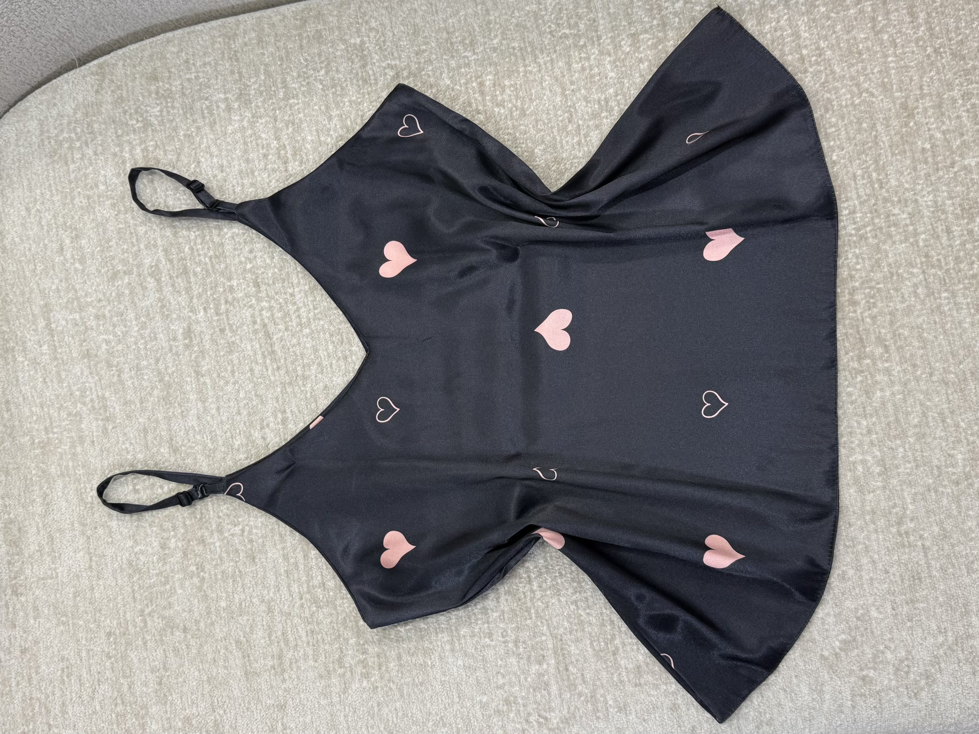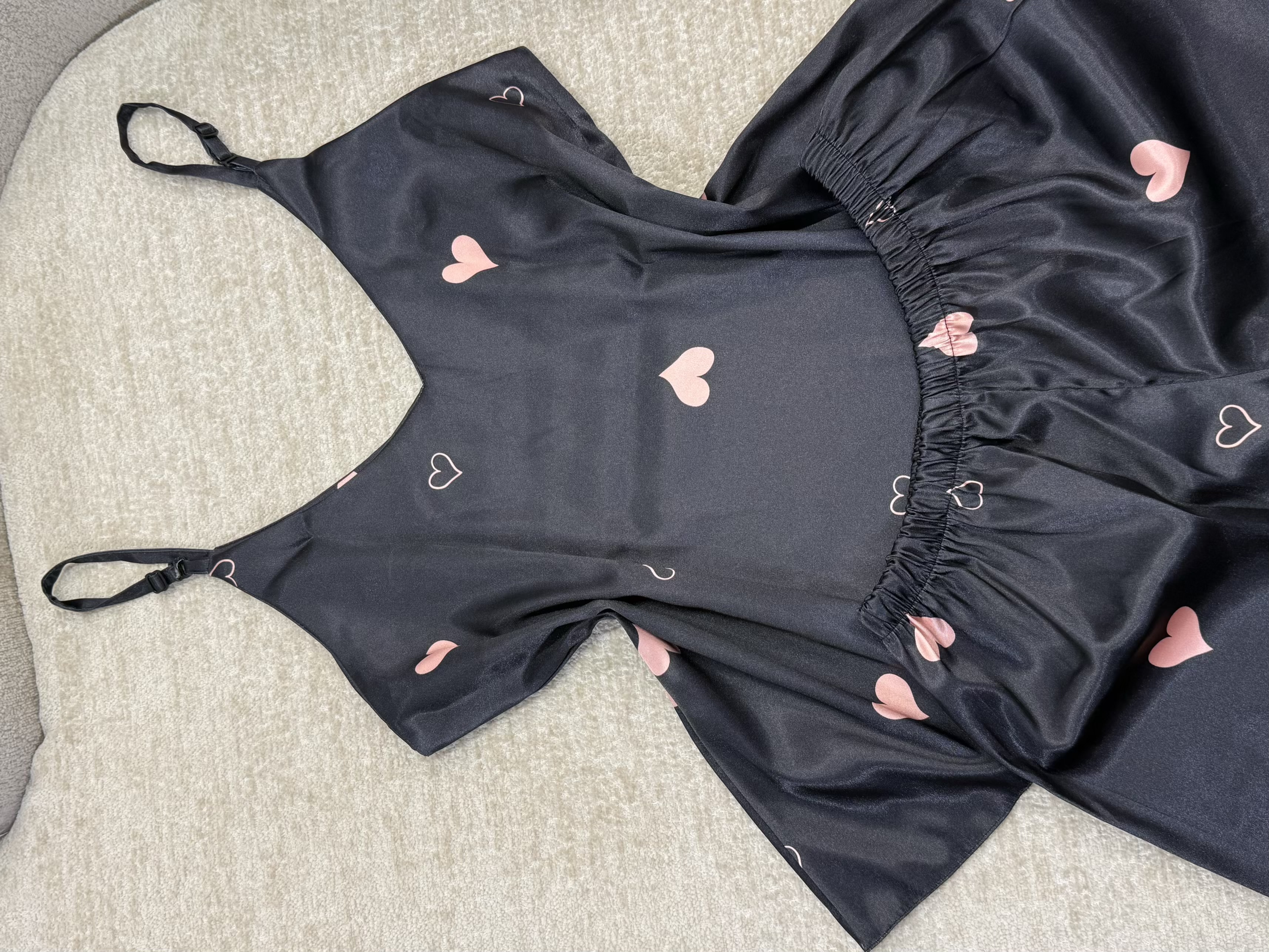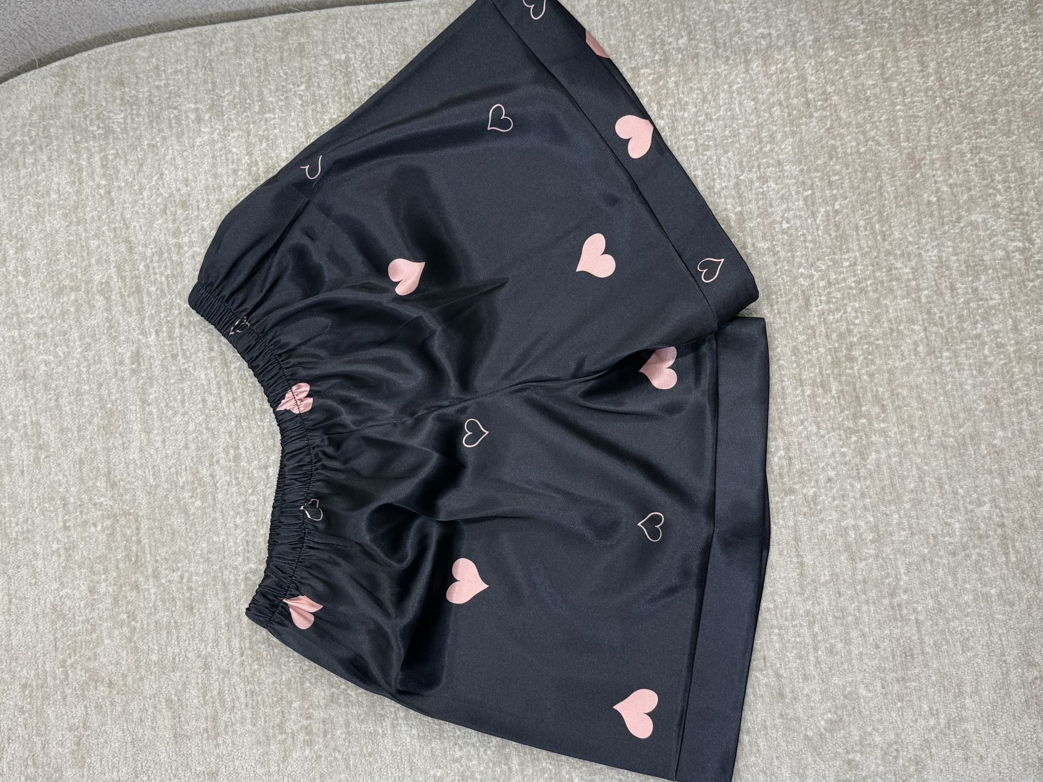 ست تاپ و شلوارک ساتن طرح قلب مشکی