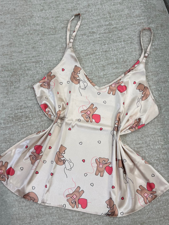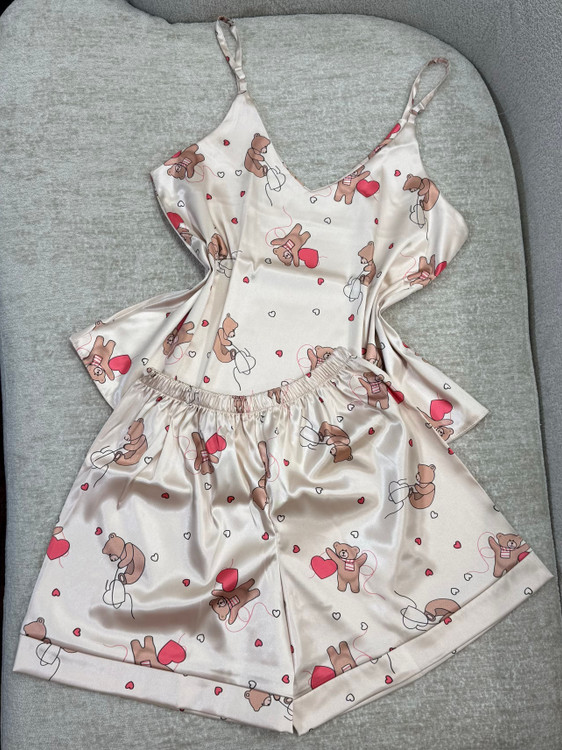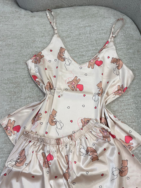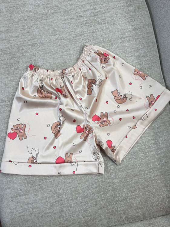 ست تاپ و شلوارک ساتن طرح خرس قلبی