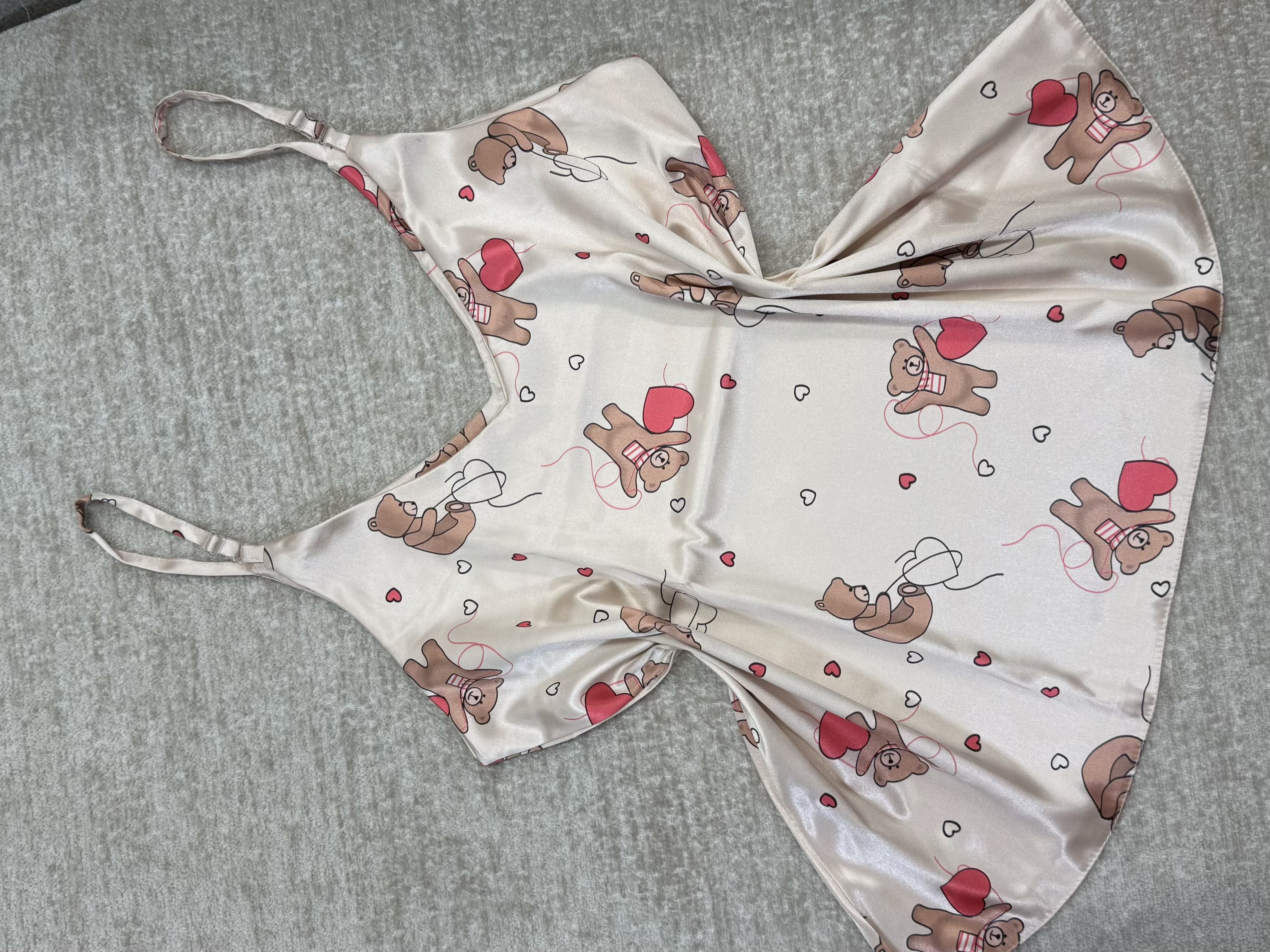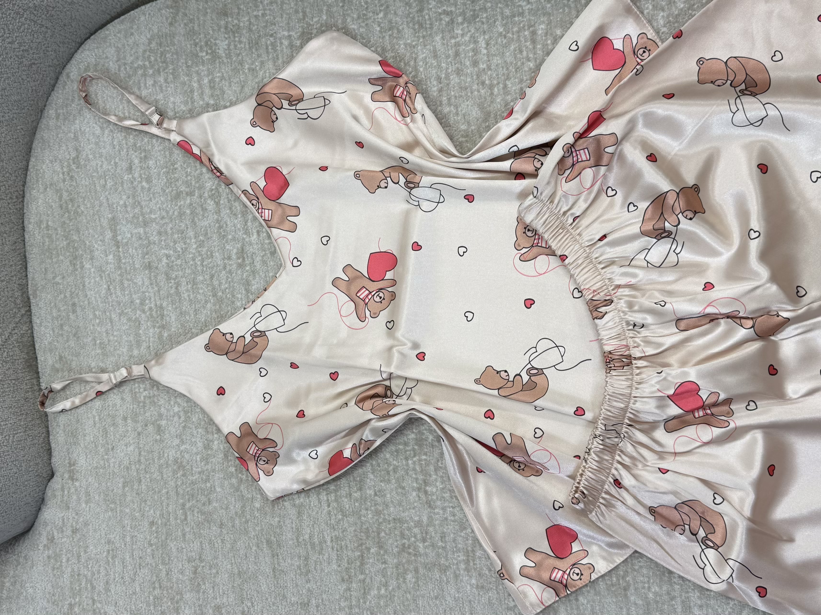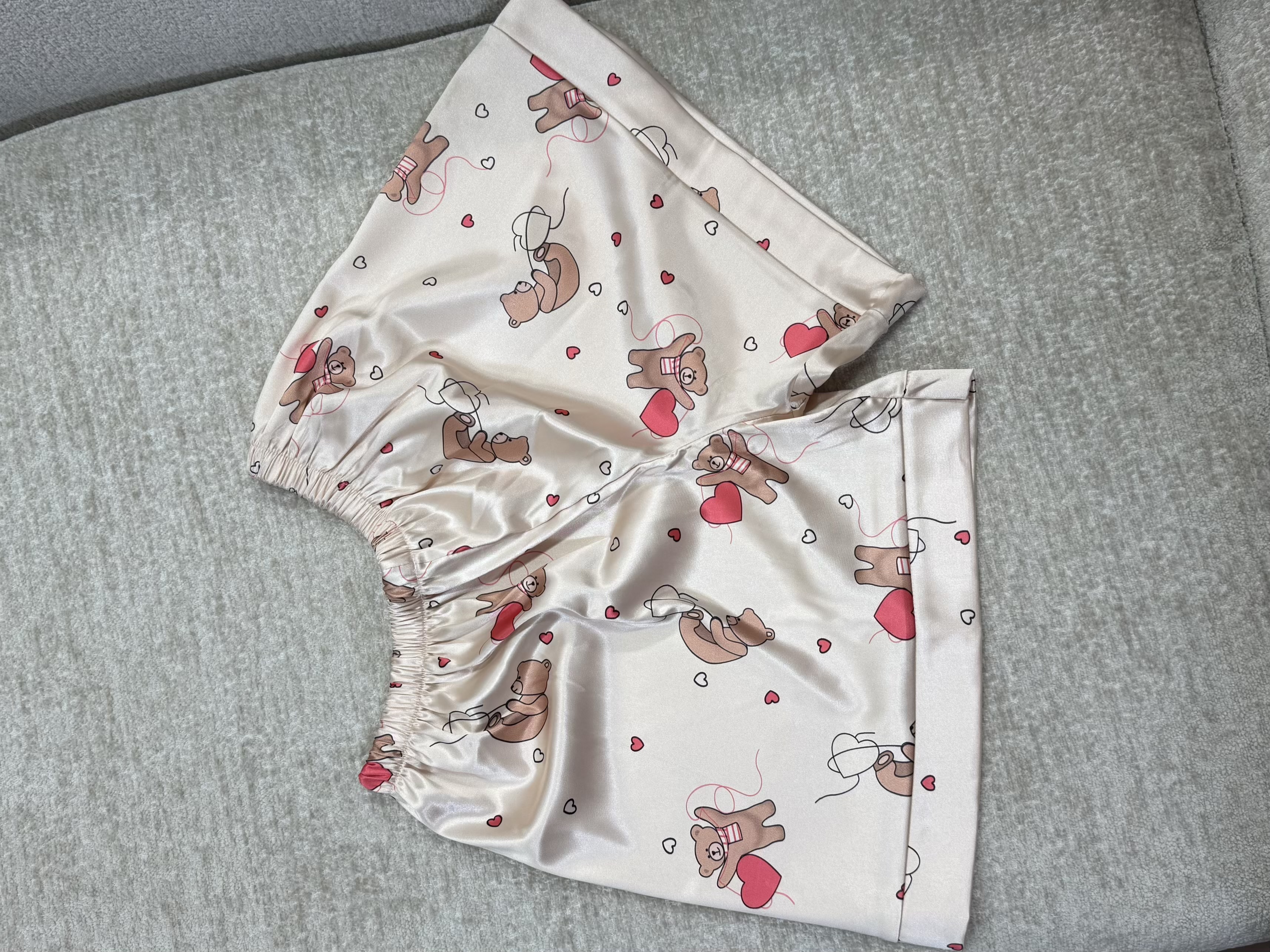 ست تاپ و شلوارک ساتن طرح خرس قلبی