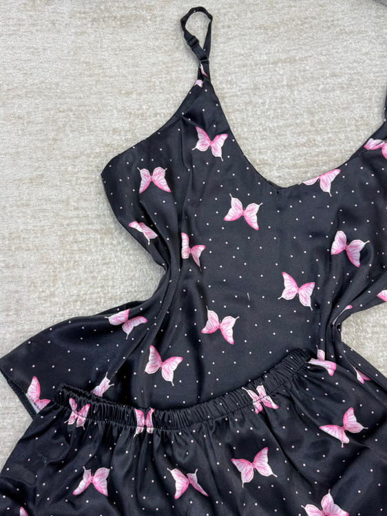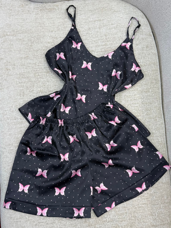 ست تاپ و شلوارک ساتن زنانه طرح پروانه