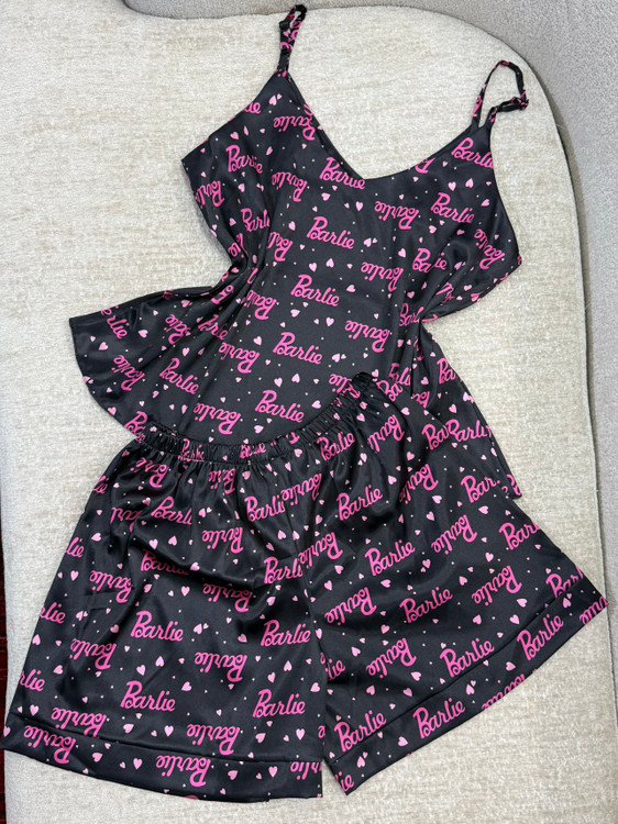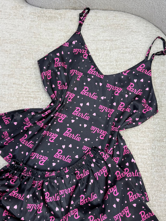 ست تاپ و شلوارک ساتن زنانه ، ترکیبی ظریف و فانتزی از لطافت و استایل شیک است. پارچه ساتن براق و نرم این ست، جلوهای مرتب و چشم نواز ایجاد می کند و در عین حال حس سبکی و راحتی بالایی روی پوست دارد. طرح های صورتی روی زمینه تیره همراه با قلب های ریز، ظاهر لباس را دخترانه، لطیف و دلنشین کرده و آن را به انتخابی جذاب برای لباس راحتی و خواب تبدیل میکند.