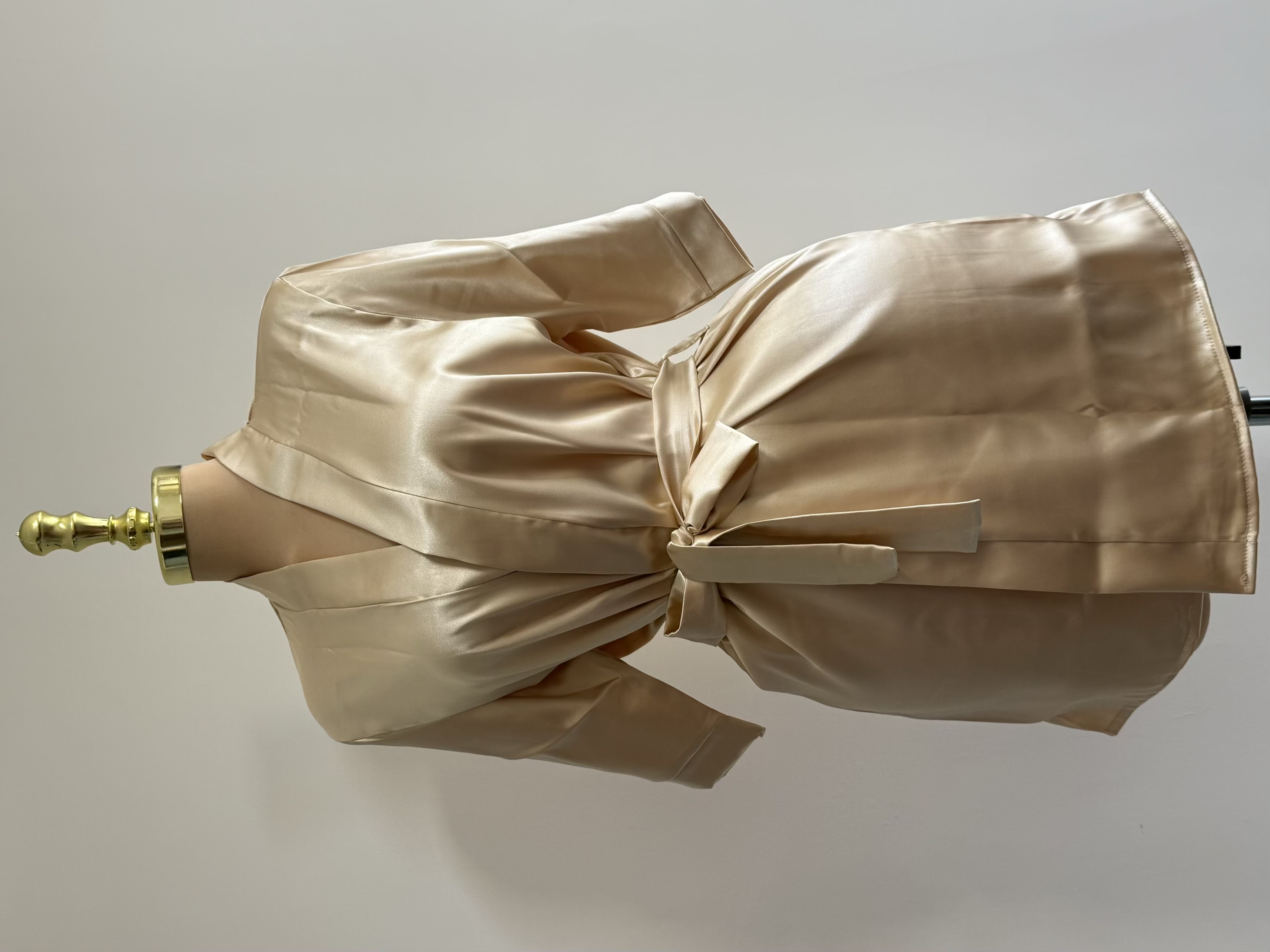اولین نکته، جنس ساتن آن است: لمس پارچه ساتن این ربدوشامبر، حس ابریشمی و خنکی دلپذیری را به پوست منتقل میکند که بلافاصله احساس آرامش و لوکس بودن را به شما القا میکند. این ساتن با کیفیت، علاوه بر دوام بالا، درخششی زیبا دارد که نور را به طرز چشم نوازی بازتاب می دهد و استایل شما را خیره کننده تر می کند.