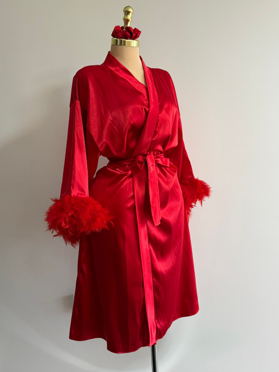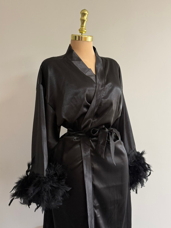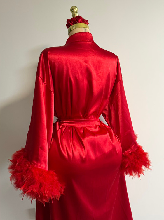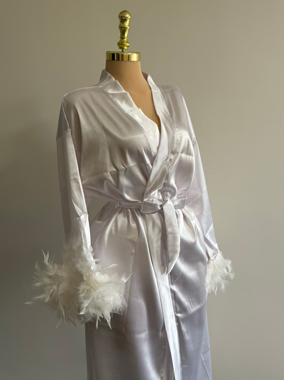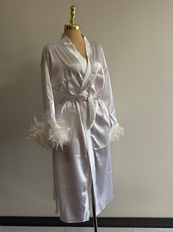 ربدوشامبر تمام ساتن لوکس با سر آستین های پری