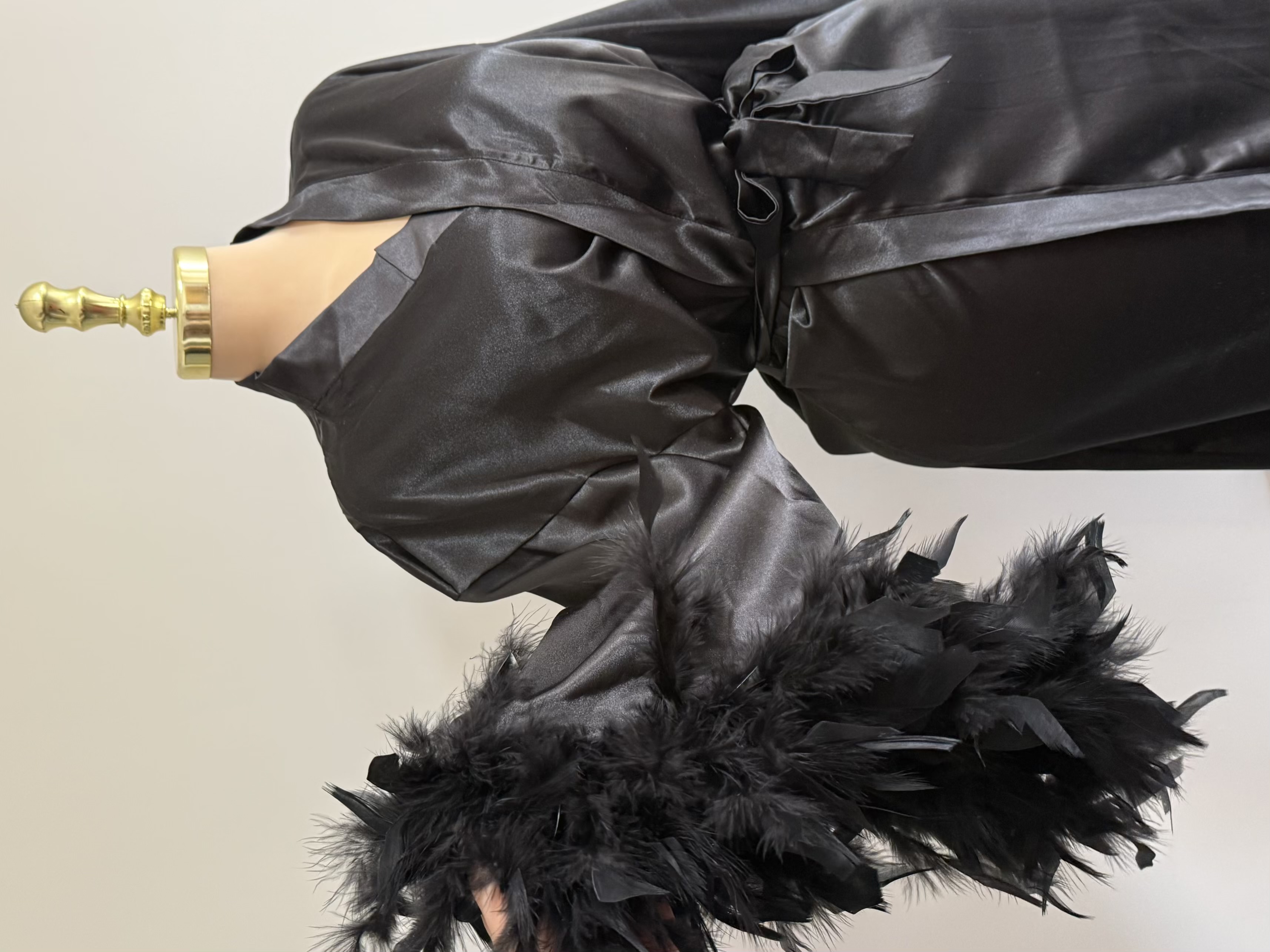 طراحی آستین آستین های گشاد با تزئین پرهای نرم و مجلل
