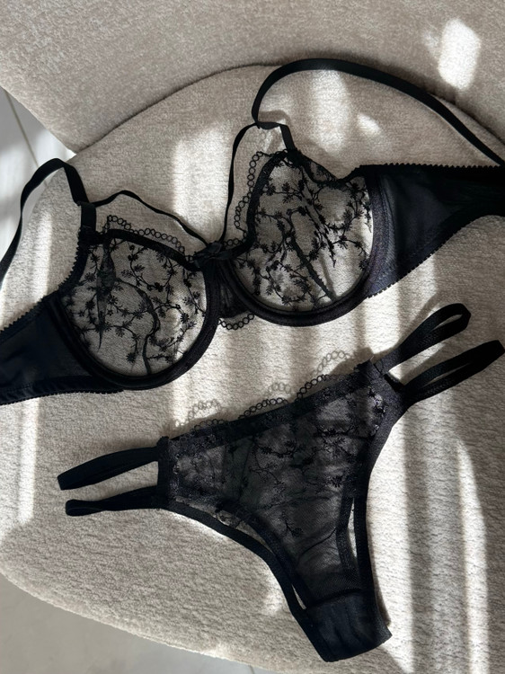 این ست به دلیل استفاده از تور شیشه ای با کیفیت و گل های برجسته، جلوه ای بسیار ظریف و خاص دارد. فنر به کار رفته در سوتین باعث فرم دهی بهتر و جلوگیری از افتادگی میشود، در حالی که تور سبک آن احساس راحتی را حفظ میکند.