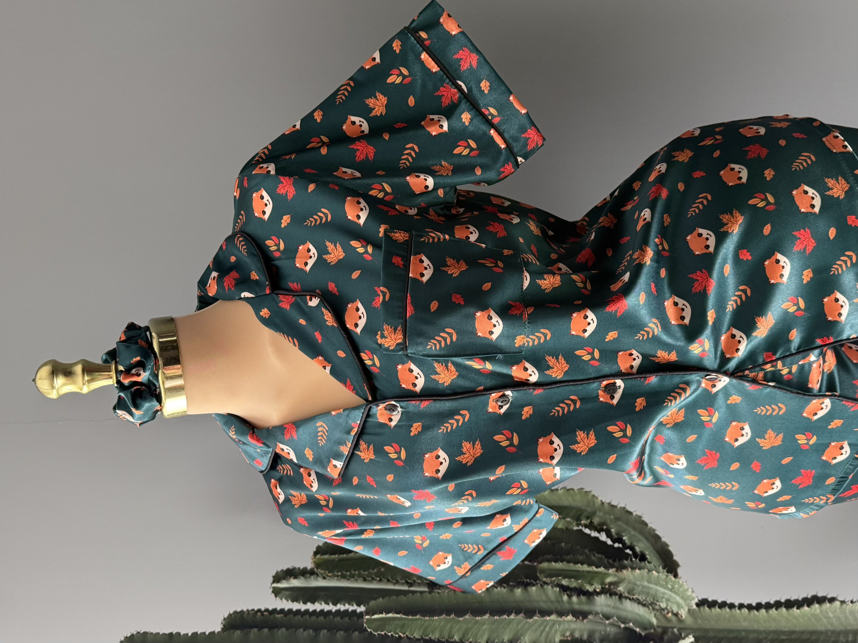 استفاده از پارچه ساتن ابریشم با درخشش ملایم و لطافت بی نظیر که مانع از حساسیت پوست میشود. مدل یقهدار و دکمهدار جلو، ظاهری شیک و بسیار زنانه به شما میبخشد.