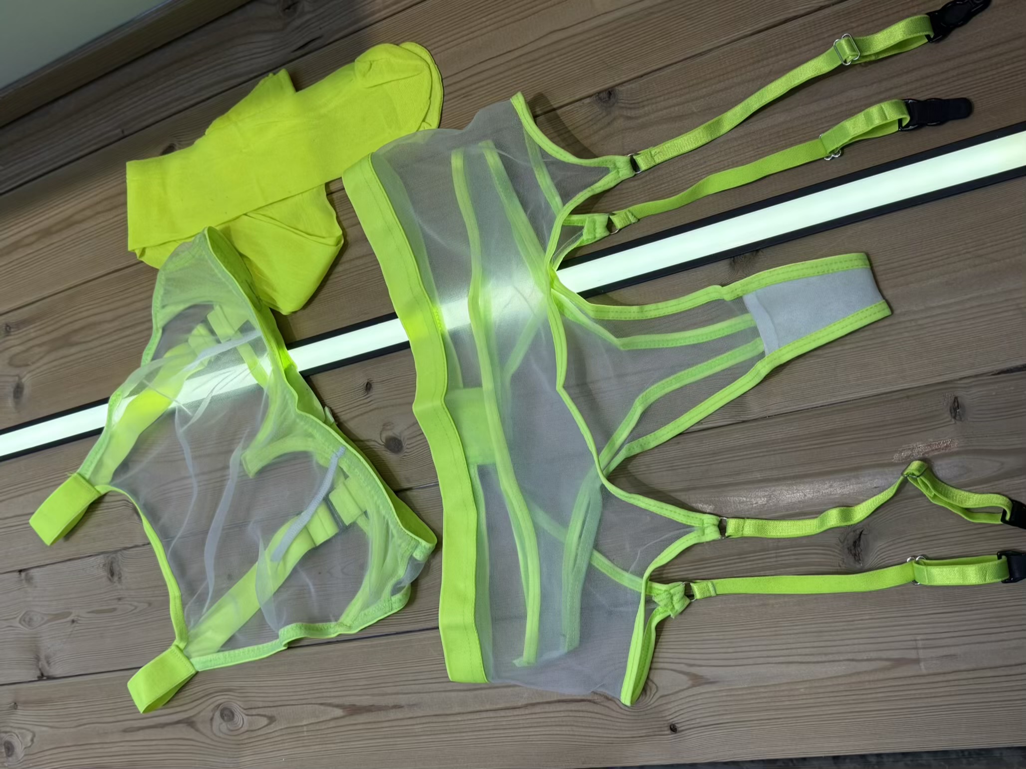 ست فانتزی ۴ تیکه تور شیشه ای و بدن نما