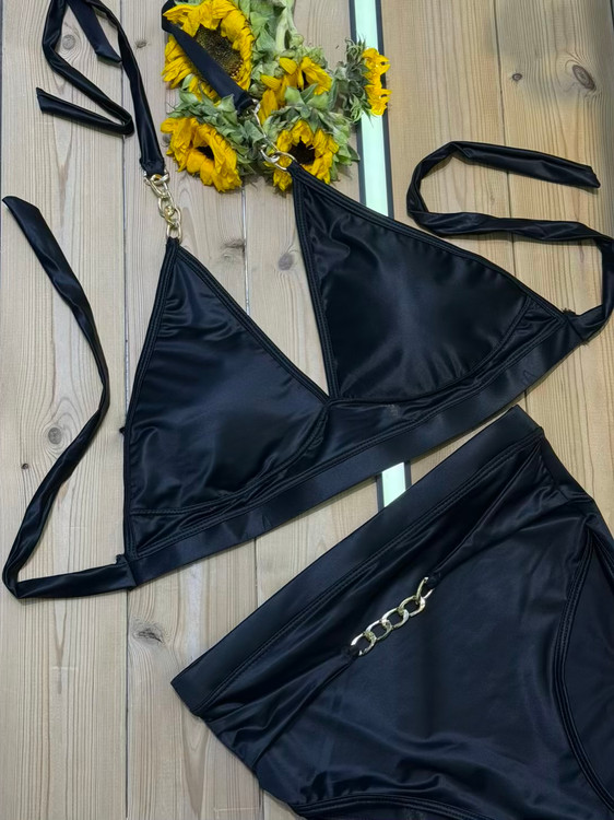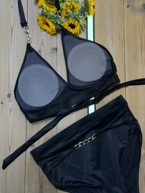بیکینی مشکی زنانه با جزئیات زنجیر طلایی