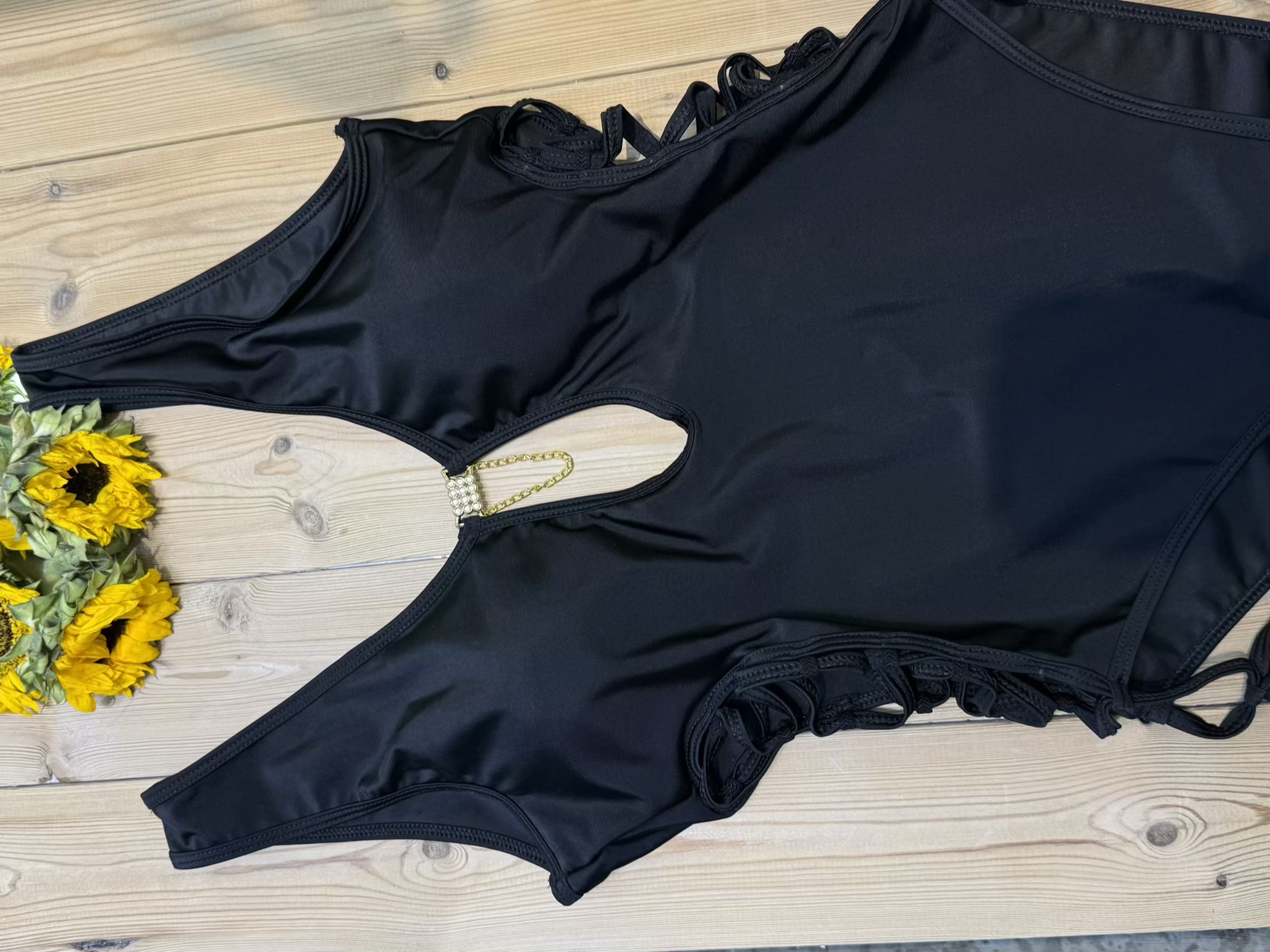 مایو زنانه مشکی شیک با سگک طلایی، کد محصول ۲۵۶